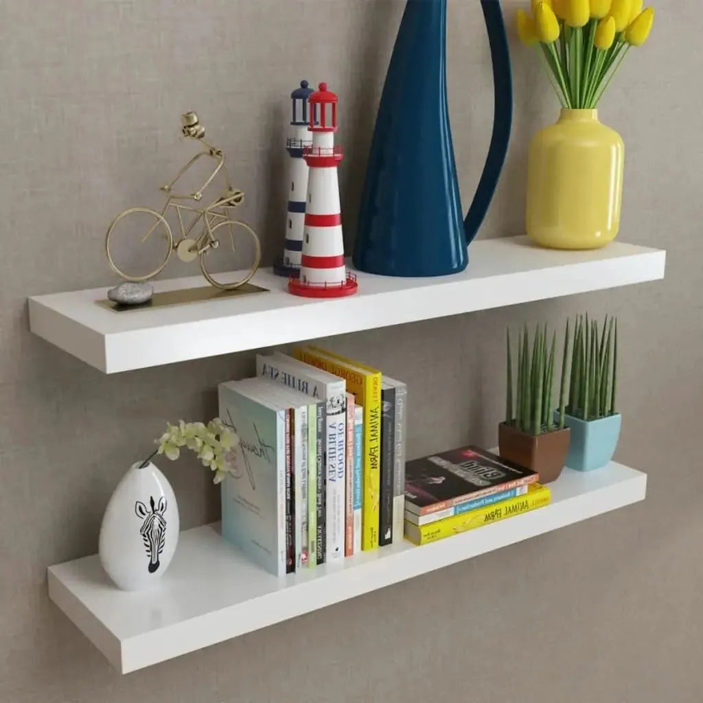 ✅ Tip: Use shelves above desks, sofas, or even beds to store books, decor, or daily essentials.
