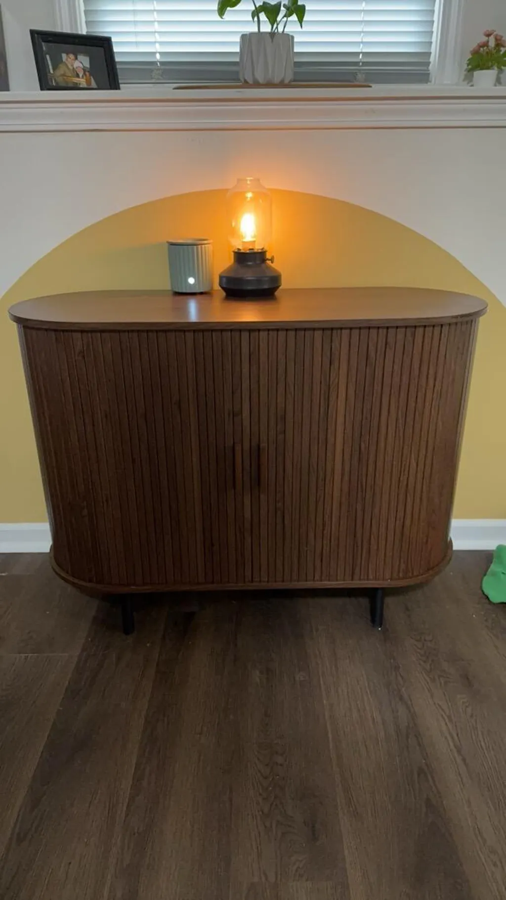 Transforme su espacio con este elegante aparador moderno de mediados de siglo de 101 cm, con exclusivas puertas corredizas de persiana y una silueta bellamente curvada. Con su elegante acabado en madera y líneas limpias, este aparador combina a la perfección el encanto retro con la funcionalidad contemporánea.